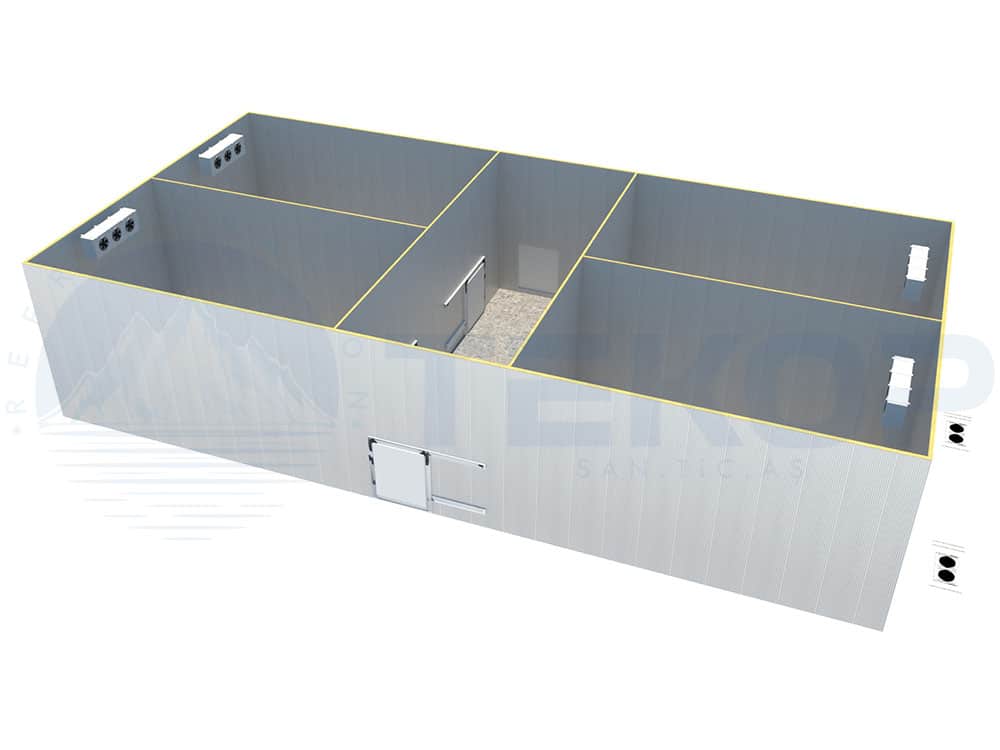 564 m³ capacity 4 pcs. Chiller Room (+2 °C) 564 m³ capacity 4 pcs. Chiller Room (+2 °C) Azerbaijan 4 x Chiller Room General Chiller Room 347 m² ORCA Split Refrigeration Unit 6 x Sliding Freezer Room Doors 1379 m² 4 x CHILLER ROOM 11,9 m 7,3 m 6,5 m +2 °C 564 m³ Future Projects