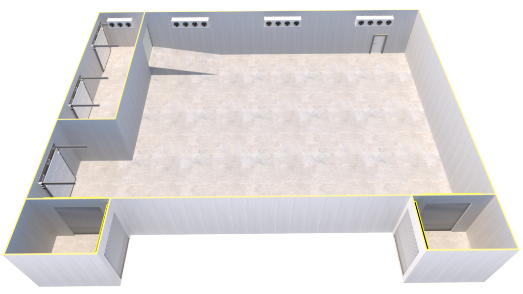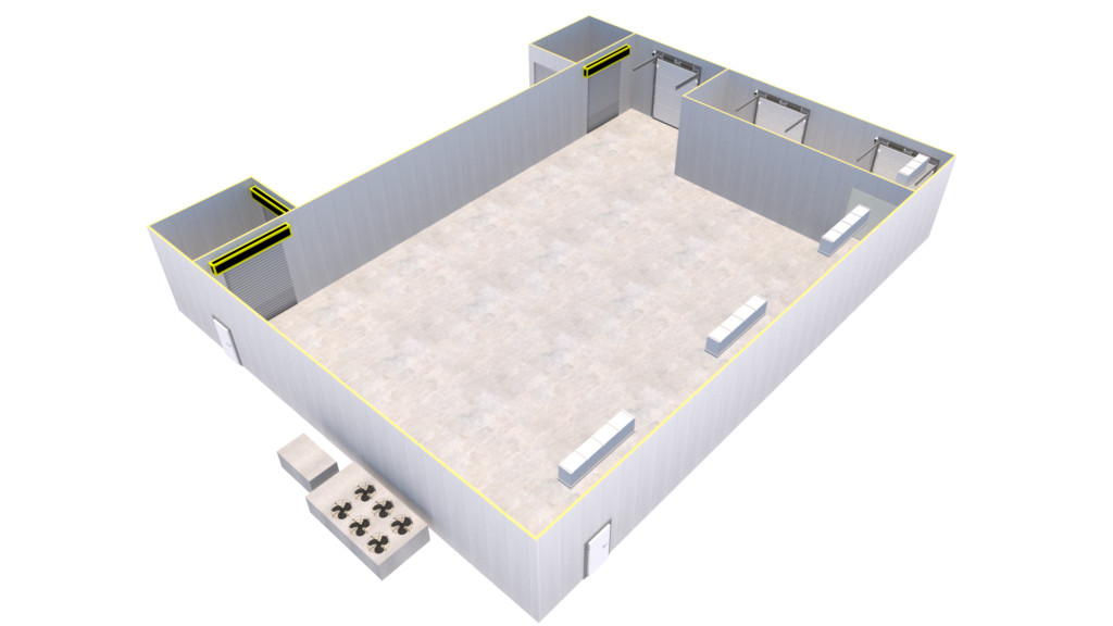 3015 m³ capacity 1 pc. Chiller Room (+5 °C / +10 °C) 3015 m³ capacity 1 pc. Chiller Room (+5 °C / +10 °C) 3015 m³ capacity 1 pc. Chiller Room (+5 °C / +10 °C) 3015 m³ capacity 1 pc. Chiller Room (+5 °C / +10 °C) 3015 m³ capacity 1 pc. Chiller Room (+5 °C / +10 °C) 3015 m³ capacity 1 pc. Chiller Room (+5 °C / +10 °C) 3015 m³ capacity 1 pc. Chiller Room (+5 °C / +10 °C) 3015 m³ capacity 1 pc. Chiller Room (+5 °C / +10 °C) 1 x Chill Room General Cold Storage 603 m² ORCA Central Refrigeration System 2 x Hinged Chiller Room Door – 1 x Sliding Door – 3 x Sectional Door – 4 x Roll-Up Door 1392 m² 30 m 5 m +5 °C / +10 °C 3015 m³ 20,1 m 4,2 m 3,9 m +5 °C / +10 °C 218 m³ 13,3 m 5,4 m 5 m – – 3,9 m Project