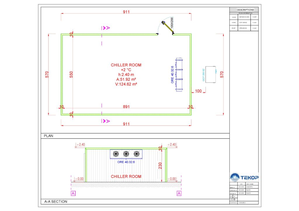 124,62 m³ capacity 1 pc. Chiller Room (+2 °C) 124,62 m³ capacity 1 pc. Chiller Room (+2 °C) 124,62 m³ capacity 1 pc. Chiller Room (+2 °C) 1 x Chiller Room General Cold Storage 51,93 m² Split Refrigeration System 1 x Hinged Chiller Room Door 128,87 m² 51,9 m² 2.4 m +2 °C 124,6 m³ 12,51 m² 3 m +2 °C 41 m³