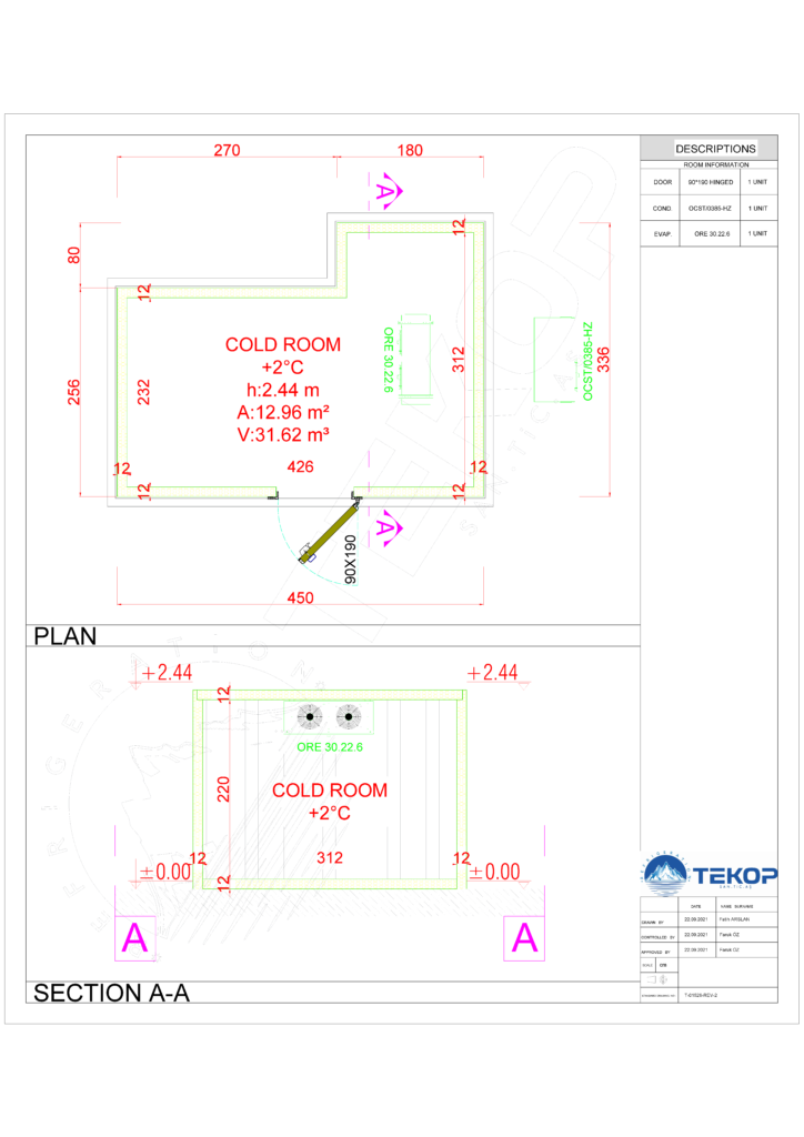 31,62 m³ capacity 1 pc. Chiller Room (+2°C) 31,62 m³ capacity 1 pc. Chiller Room (+2°C) 31,62 m³ capacity 1 pc. Chiller Room (+2°C) 31,62 m³ capacity 1 pc. Chiller Room (+2°C) 1 x Chiller Room General Cold Storage 12,96 m² Split Refrigeration System 1 x Cold Room Hinged Door 69,31 m² 12,96 m² 2,44 m +2 °C 31,62 m³ Future Projects