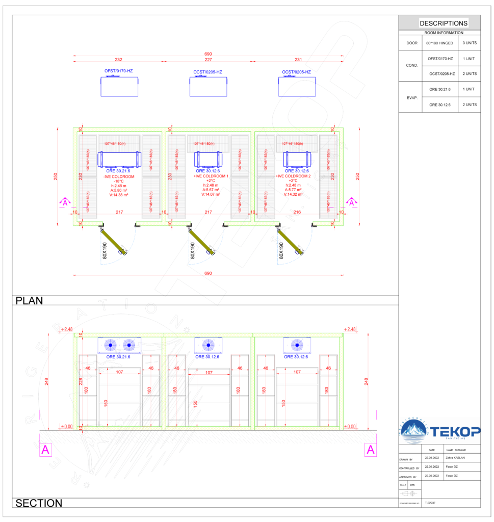 2 x Chiller Room, 1 x Freezer Room
