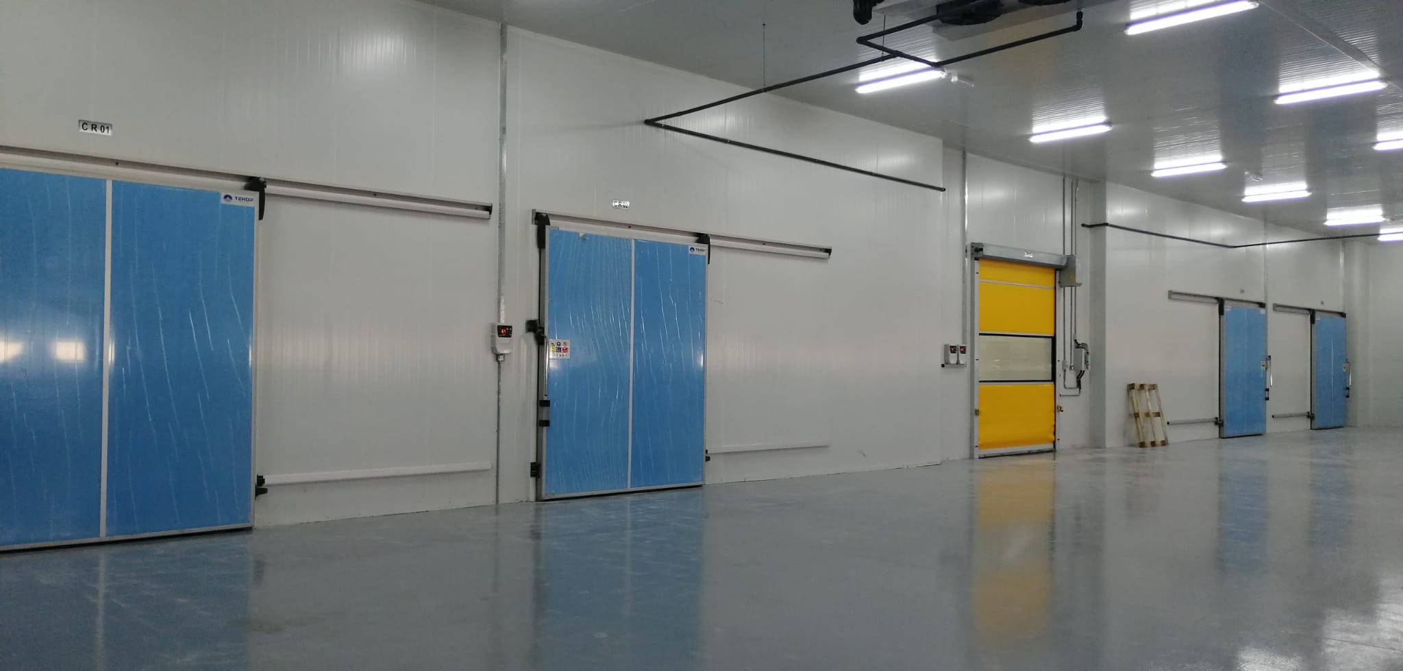 Turnkey food cold rooms, corridor, loading area and sectional door installation.