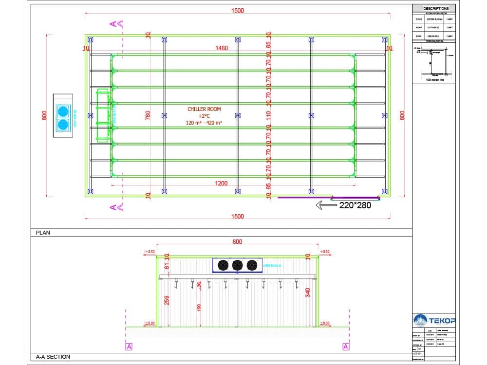 420 m³ capacity Meat Cold Room (+2 °C) 420 m³ capacity Meat Cold Room (+2 °C) 420 m³ capacity Meat Cold Room (+2 °C) Bahrain Chiller Room Meat Cold Storage 420 m² ORCA Split Refrigeration Unit Sliding Door 281 m² 15 m 8 m 3,5 m +2 °C 420 m³ Future Projects