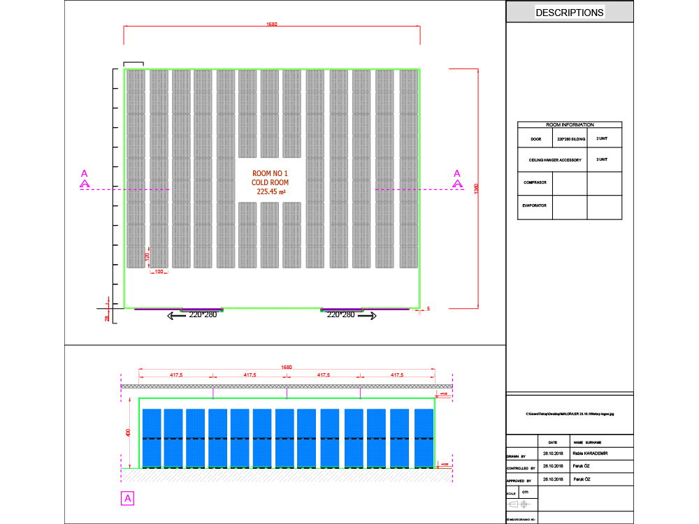 – 913 m³ capacity 1 pc. Cold Room (+2 °C) – 913 m³ capacity 1 pc. Cold Room (+2 °C) South Africa Cold Room General Cold Room 228 m² Split Refrigeration System 2 x Sliding Doors 475 m² 17 m 13,6 m 4 m +2 °C 913 m³ Future Projects